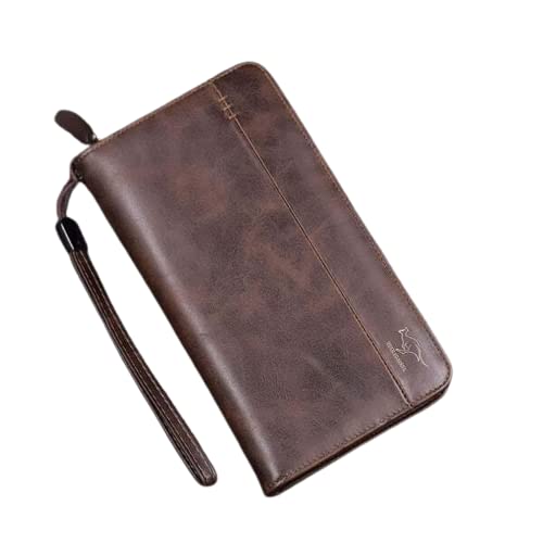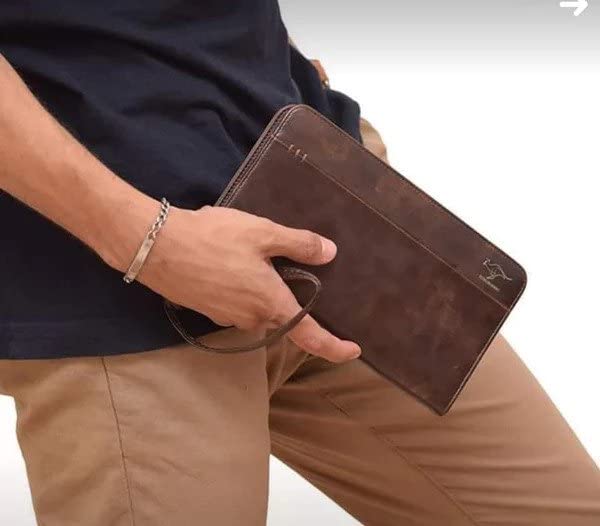 محفظة جلد كان جارو مستوردة -خامة ممتازة - سوستة قوية مع جيب خلفى للموبايل - للكبار من الجنسين - لون بنى غامق