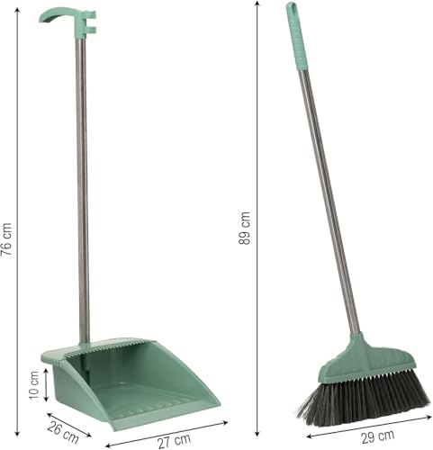 • سهلة التنظيف والتخزين - صيانة بسيطة تحافظ على هذه المجموعة جديدة وجاهزة للاستخدام. ما عليك سوى شطف الفرشاة والجاروف بالماء، واتركيهما يجفان، وثبتيهما معًا لتخزين خالٍ من الفوضى. سواء تم تعليقها على خطاف أو تخزينها في درج، فإن هذه المجموعة تبقى منظمة وتدوم طويلاً لاحتياجات التنظيف اليومية.