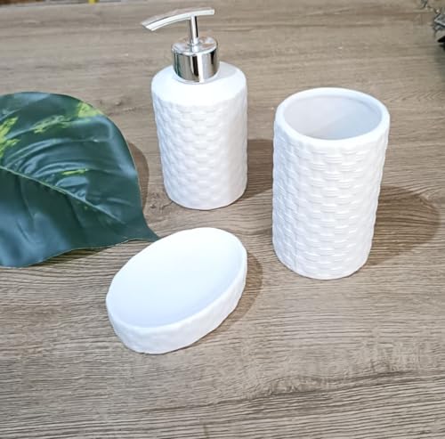 Generic - "طقم حمام بورسلين مستورد: جودة عالية وأناقة لا مثيل لها - متاح باللون الأسود والأبيض، يتضمن 3 قطع متميزة: ديسبنسر، صابونة، معجون وفرشاة - من جينيريك