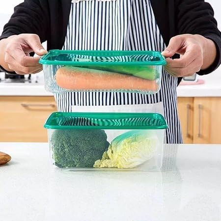 - التصميم والتنظيم أحجام متنوعة: سعات تبدأ من 180 مل حتى 2060 مل لتغطية احتياجات: صلصات صغيرة، وجبات فردية، وخضار/بروتينات بكميات كبيرة. أشكال متعددة: مربعة ومستطيلة وعمودية لاستغلال المساحات في رفوف الثلاجة والباب والفريزر. قابلية التراص: تصميم مسطح للأغطية والقواعد لسهولة الرص فوق بعض دون انزلاق، ما يوفر مساحة واضحة. رؤية المحتوى: خامة شبه شفافة أو شفافة لتحديد الطعام بسرعة دون فتح العلبة. ترتيب منطقي: المقاسات متدرجة تناسب التحضير المسبق للوجبات، التقسيم الأسبوعي، أو فصل مكونات الطبخ.