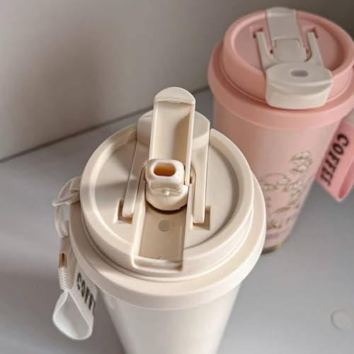 Generic - مجّ حراري ورد مستورد | سعة 600 ملي - من الستانلس ستيل غير قابل للصدأ | تصميم ملون وأنيق | فوهتان للشرب - من جينيريك