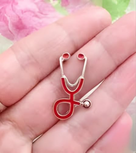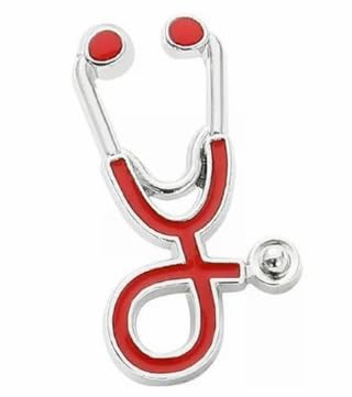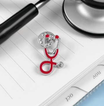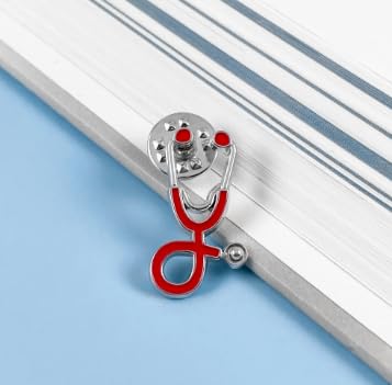 Generic - بروش مستورد بتصميم مستوحي من سماعة الطبيب متعدد اللون (احمر-فضي)..