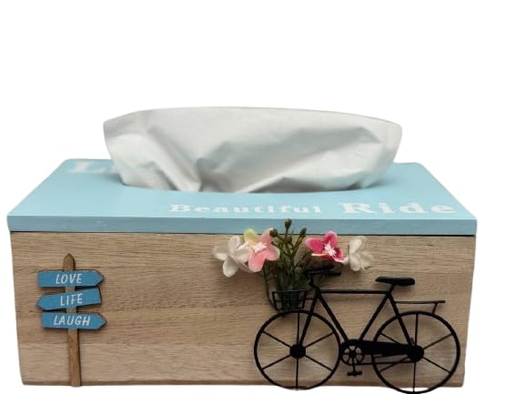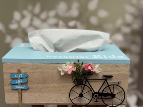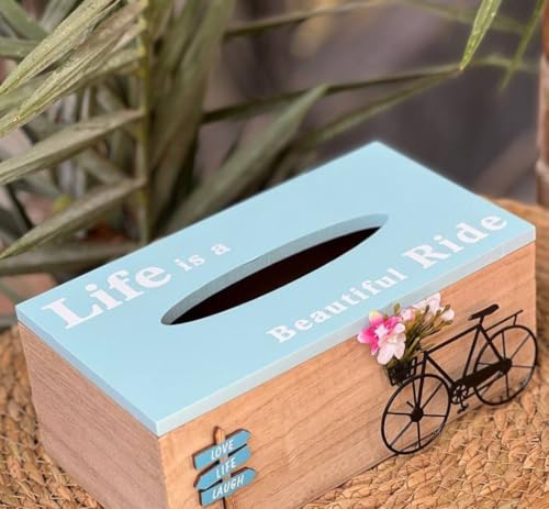 Generic - علبة مناديل خشب بتصميم عجلة مستوردة – ديكور عصري يضيف لمسة فنية لأي مكان (لبني)