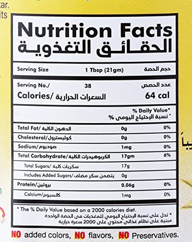 - لا يوصى به كغذاء للأطفال أقل من سنتين. لمرضى السكر، لا تتجاوز في الجرعة اليومية التي تبلغ 20 جرام (3 ملاعق صغيرة).