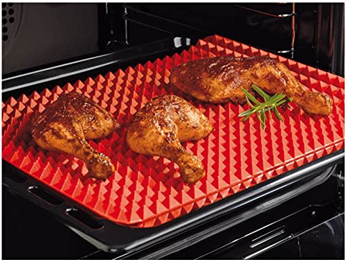 Generic - مقلاة هرمية من السيليكون من ان هاوس، صينية دجاج مشوي ومصفاة دهن (احمر)