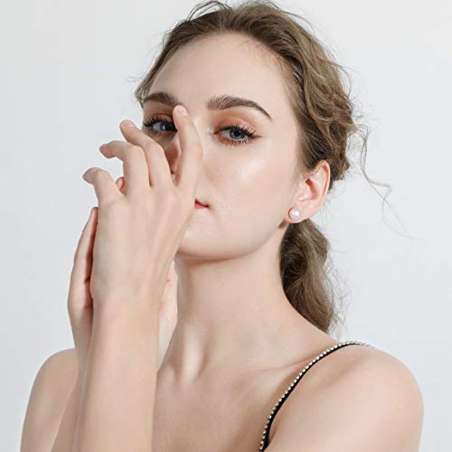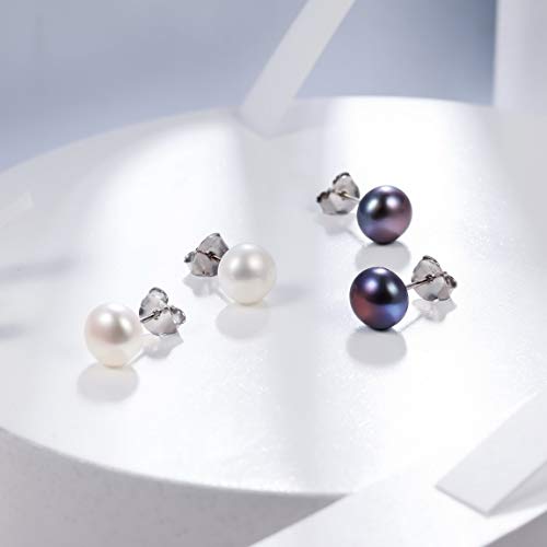 INBLUE - ان بلو اقراط من الفضة الاسترليني عيار 925 ولؤلؤ المياه العذبة للنساء والفتيات مرصعة باللؤلؤ الابيض والارجواني مجموعة هدايا لوصيفة العروس والاصدقاء المقربين لؤلؤ