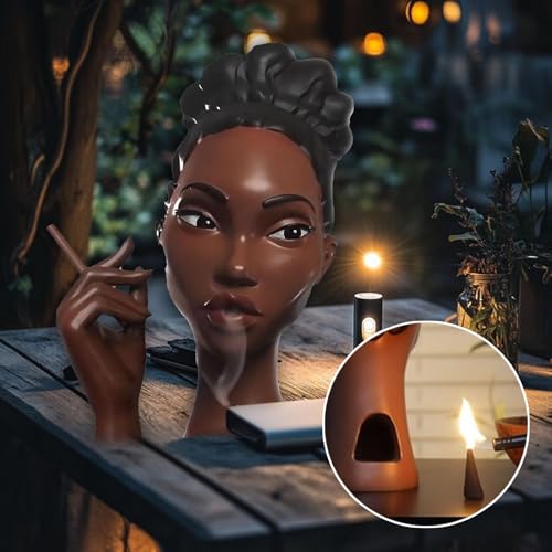 longjunjunfashion - حامل مبخرة على شكل رأس مبخرة للنساء، حامل بخور أسود، حامل مخروط بخور أسود لديكور المنزل والمكتب