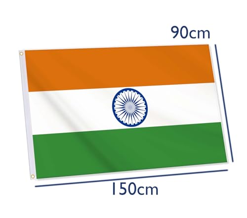 NOVDEK - علم الهند، علم هندي درابو هندي مقاس 3 × 5 قدم، مقاس 36 × 60 انش، كبير رقمي بطباعة مزدوجة، ديكورات متينة من البوليستر السميك 150D مع حلقتين نحاسيتين