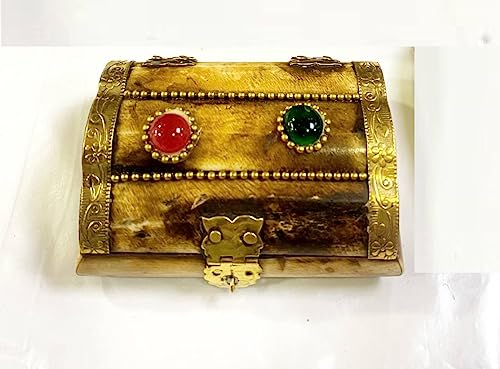 Generic - علبة حفظ اكسسوارات مستوردة من الهند مصنوعه من العظم الطبيعى ( العاج ) مرصعه بالاحجاز الكريمه ومبطنه من الداخل كما بالصور