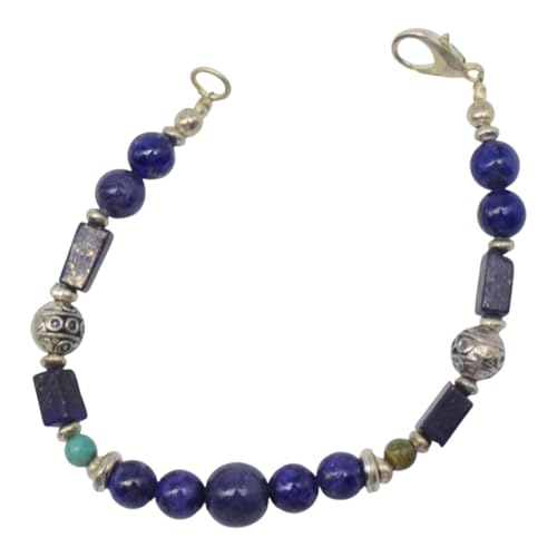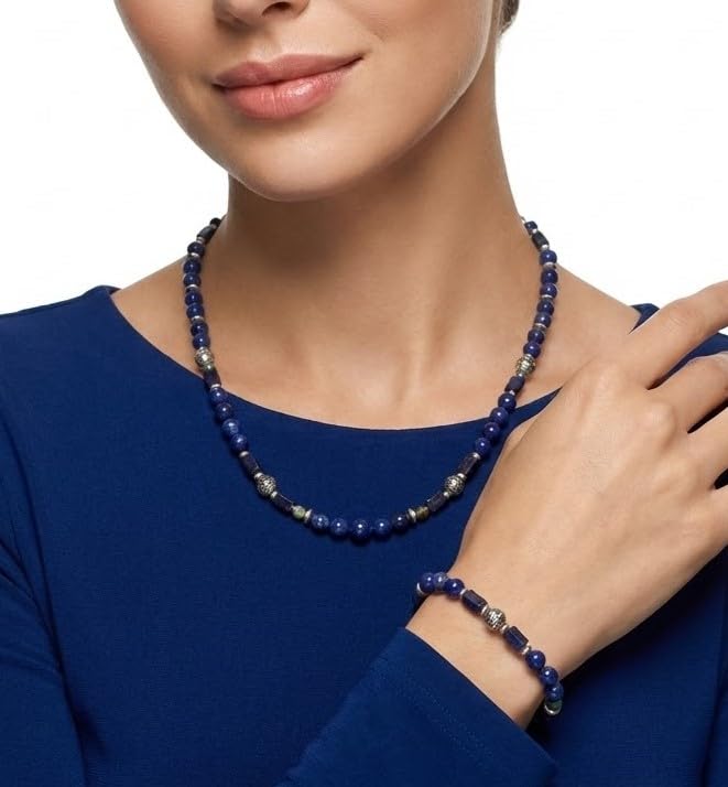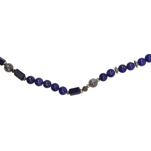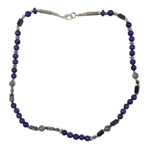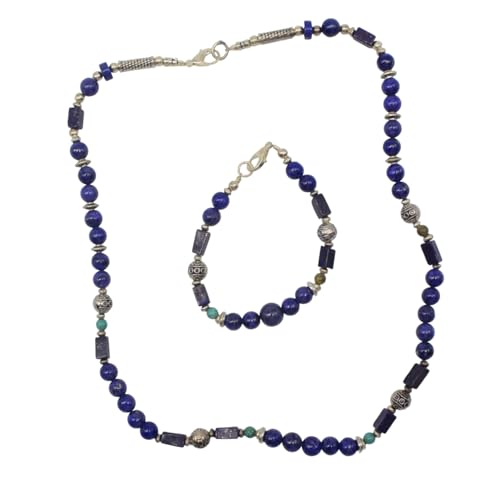 Indian Stones MA - طقم عقد وانسيال هندي فاخر من الفضة المخلوطة بالنحاس اقل من العيار مرصع بأحجار طبيعية كريمة من الفيروز ولابس لازولي، قطعتين - تركواز ازرق Set-2-A