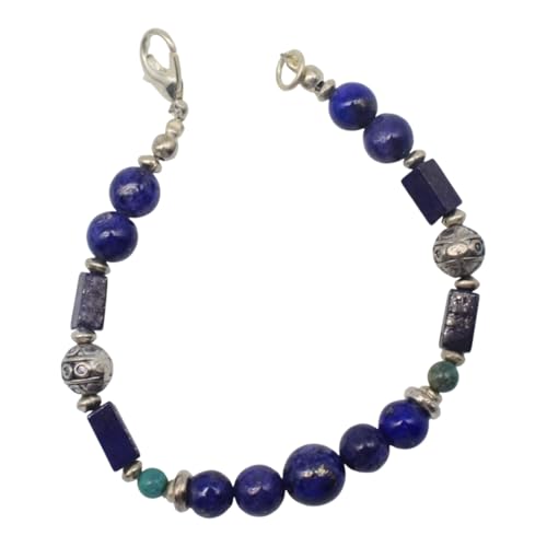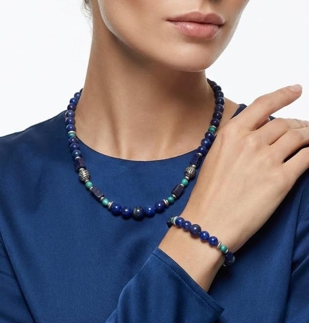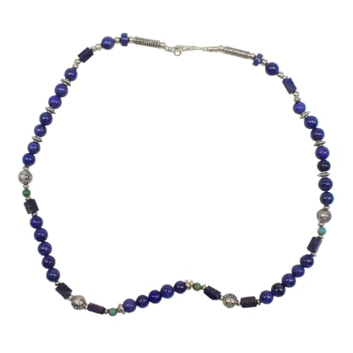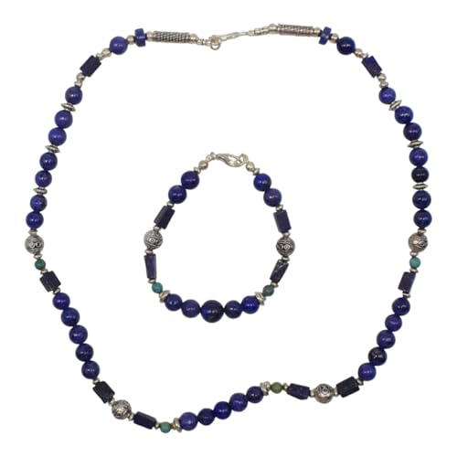 Indian Stones MA - طقم عقد وانسيال هندي فاخر من الفضة المخلوطة بالنحاس اقل من العيار مرصع بأحجار طبيعية كريمة من الفيروز ولابس لازولي، قطعتين - تركواز ازرق Set-2-B