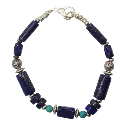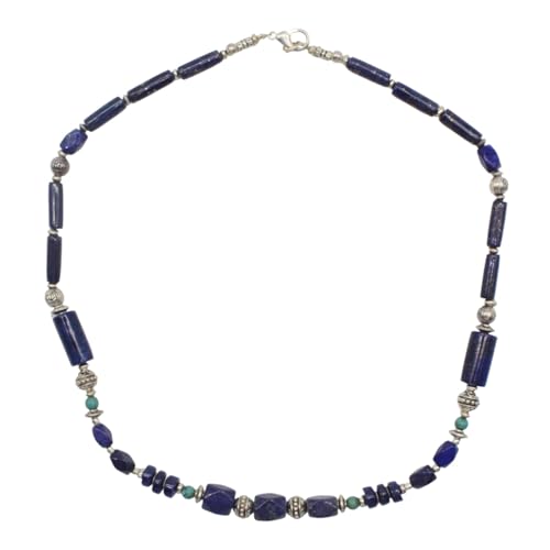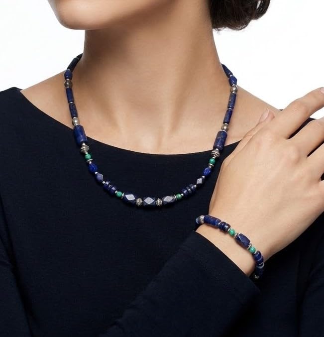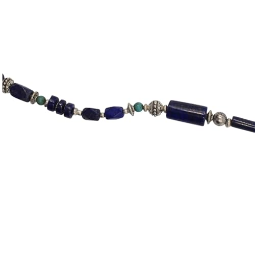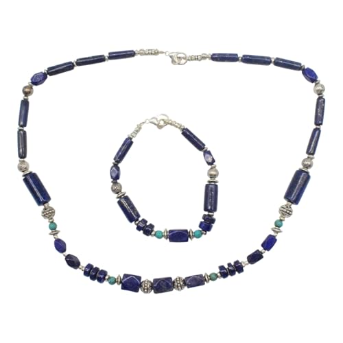 Indian Stones MA - طقم عقد وانسيال هندي فاخر من الفضة المخلوطة بالنحاس اقل من العيار مرصع بأحجار طبيعية كريمة من الفيروز ولابس لازولي، قطعتين - تركواز ازرق Set-2-F