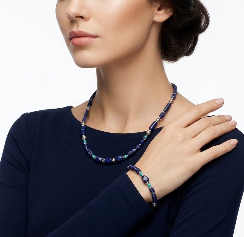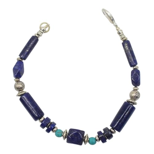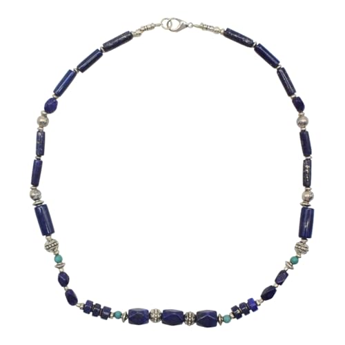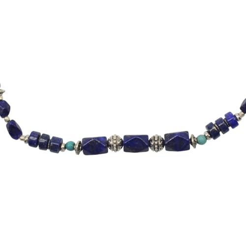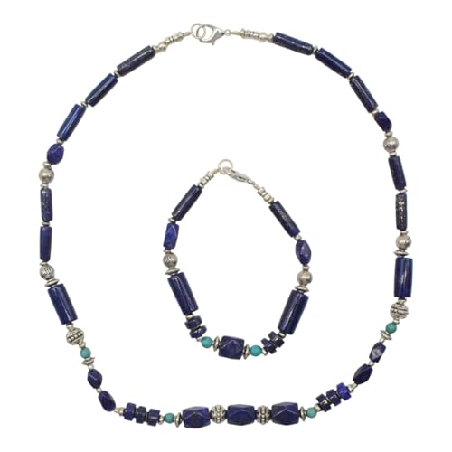Indian Stones MA - طقم عقد وانسيال هندي فاخر من الفضة المخلوطة بالنحاس اقل من العيار مرصع بأحجار طبيعية كريمة من الفيروز ولابس لازولي، قطعتين - تركواز ازرق Set-2-H