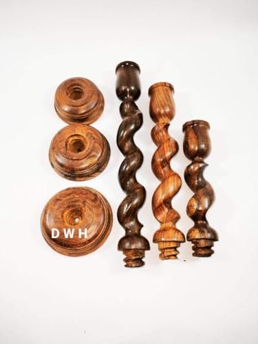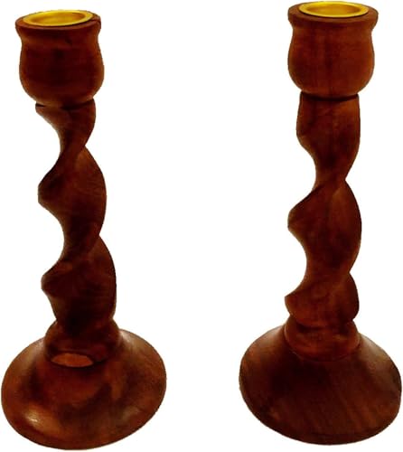 AREXOL - طقم شمعدان خشب شيشام هندي 3 قطع بتشطيب لامع وتصميم لولبي يدوي فاخر لديكور المنازل والطاولات والمناسبات