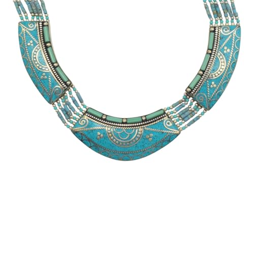 Indian Stones MA - عقد هندي حريمي فاخر من الفضة المخلوطة بالنحاس اقل من العيار مرصع بأحجار طبيعية كريمة من اللولي والمرجان ودلايه من الصدف - متعدد الالوان Awd3
