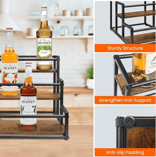 - منظم لزجاجات الشربات: تم تصميم رف شربات القهوة هذا لعرض الشربات وزجاجات العصير في ترتيب وأناقة وتنظيم، إنها طريقة رائعة لاستخدام المساحة بشكل أكثر كفاءة وهكذا لن تنزعج بعد الآن من منظر الفوضى على الطاولة.