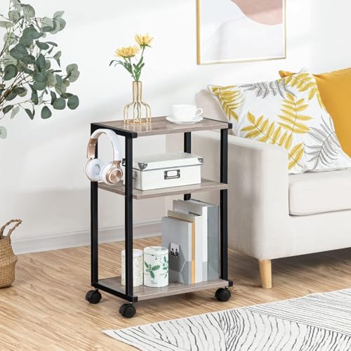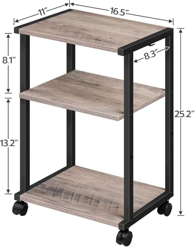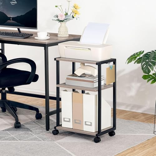INDIDECOR - حامل طابعة محمول من انديكور 36152، عربة طابعة من 3 طبقات تحت المكتب مع مساحة تخزين، عربة دوارة صناعية قابلة للتعديل، طاولة صغيرة متينة على عجلات للمنزل والمكتب