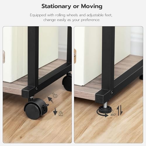 - خياران للاستخدام: يمكن تحريك حامل الطابعة هذا بـ 4 عجلات بينما يقف ثابتًا مع 4 أقدام قابلة للتعديل. يمكن قفل عجلتين من 4 عجلات بفرامل في أي وقت بينما 4 أقدام قابلة للتعديل تجعل حامل الطابعة هذا مناسبًا جدًا لأرضيتك دون خدوش