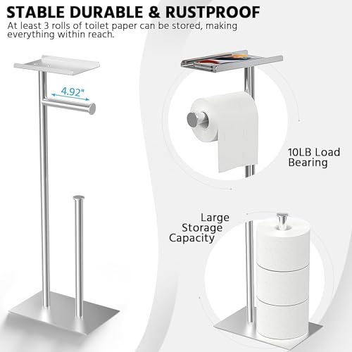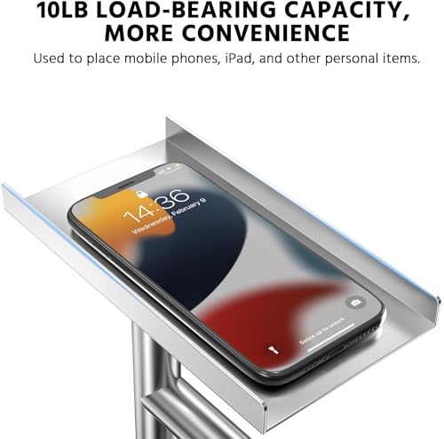 INDIDECOR - حامل ورق تواليت فضي 38572 من انديكور مع رف للموبايل، لديكور الحمام تخزين مناديل قائم بذاته، ملحقات ار في، مستلزمات المنزل والحمام والشقة.
