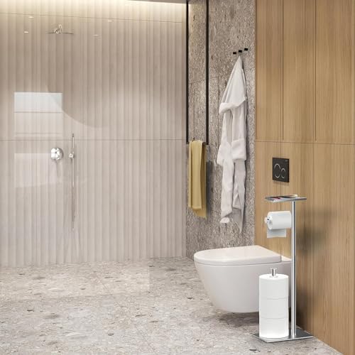 - 【رف إضافي】 سيوفر لك حامل ورق المرحاض المزود برف أفضل راحة. يمكنك أيضًا وضع الأشياء الصغيرة مثل المناديل المبللة أو مفاتيح المحفظة أو معطرات الجو على الرف.