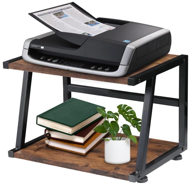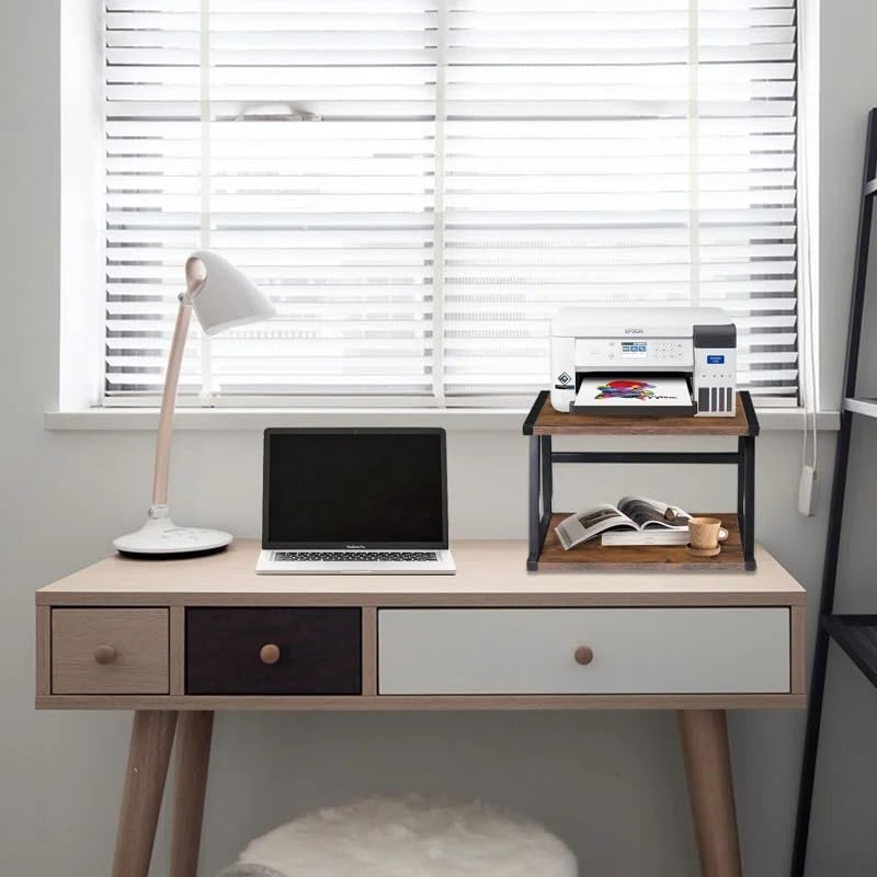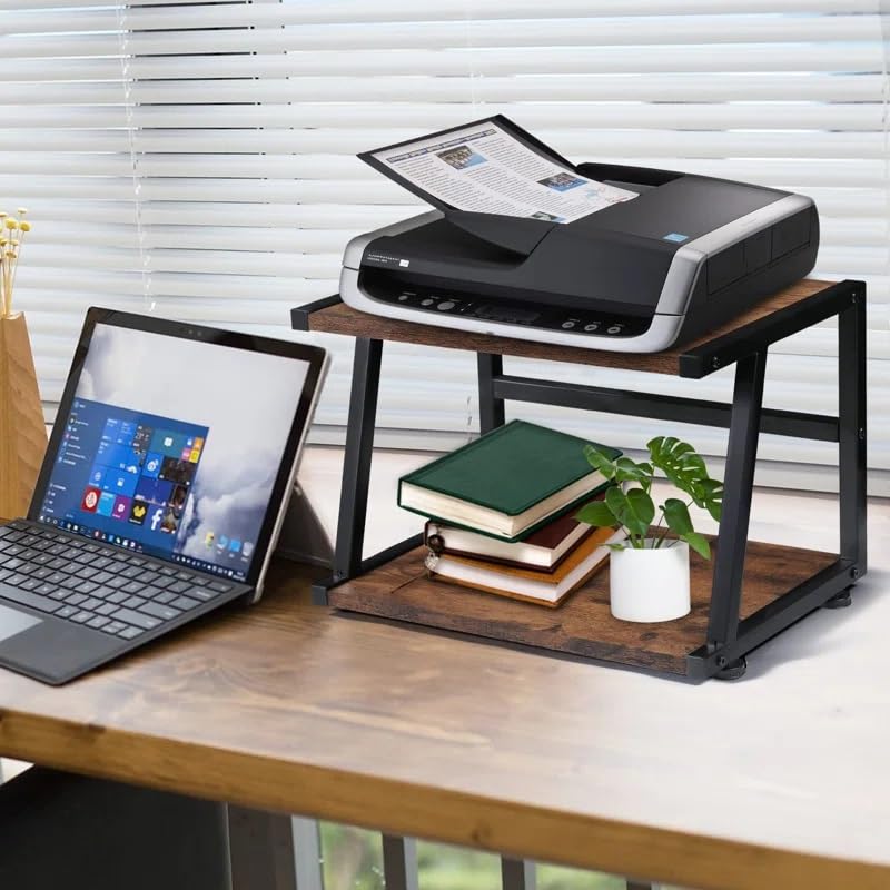 INDIDECOR - حامل طابعة مكتبي بطبقتين مع رف تخزين 45196، شديد التحمل، للمساحات الصغيرة من انديكور، بني ريفي