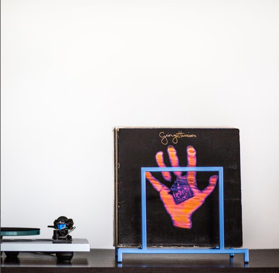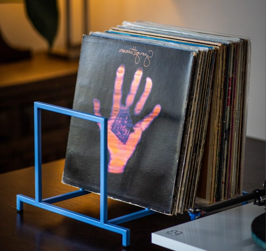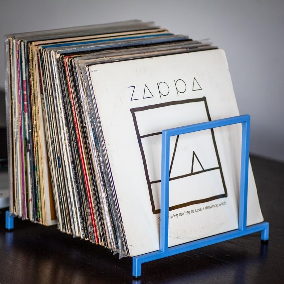 INDIDECOR - حامل عرض أسطوانات الفينيل من انديكور 46380 / حامل أسطوانات فينيل موفر للمساحة - ازرق