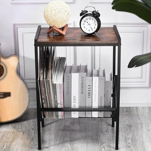 - 🎵【تصميم كلاسيكي وفريد من نوعه】 يعتمد حامل مشغل التسجيلات على تصميم خشبي بني بسيط ودعامة معدنية، والتي لا تحتفظ فقط بشعور الحبوب الخشبية القديمة، ولكن أيضًا لا تؤثر على الشعور بالموضة العصرية. يمكن أن يعمل الحامل البسيط والأنيق أيضًا كرف أثاث لتزيين منزلك أو مكتبك.