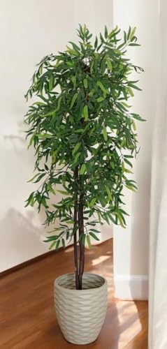 Generic - شجرة اصطناعية داخلية مع أوراق خضراء، مزروعة في وعاء أبيض مموج