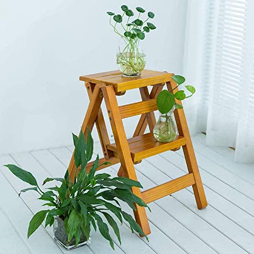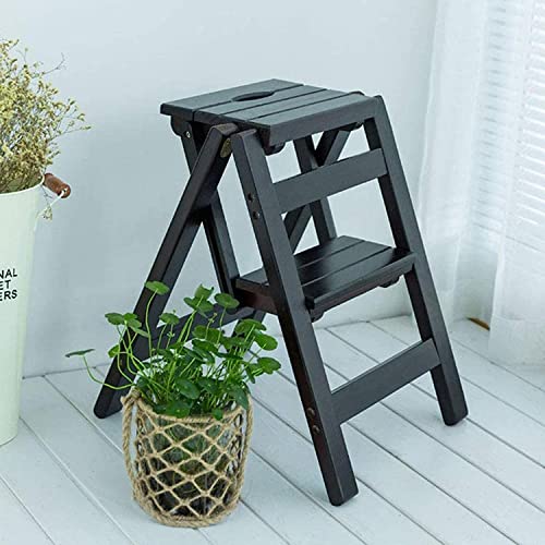 TKYDM - كرسي تسلق داخلي مقعد مطبخ خشبي بدرجتين محمول قابل للطي لديكور المنزل لون الجوز