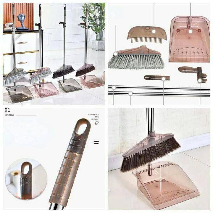Generic - مجموعة مقش بجاروف قائمة بذائها لتنظيف ارضيات الاماكن الداخلية كالمنزل والمكتب والمطبخ والردهة