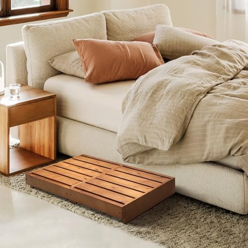 koretech - درجة سلم خشبي للاستخدام بالأماكن الداخلية، ارتفاع 8.9 سم، درجات للأماكن الخارجية بوسادات مضادة للانزلاق، مقعد أمان للحمام والمطبخ والسرير (لون خشب البلوط)