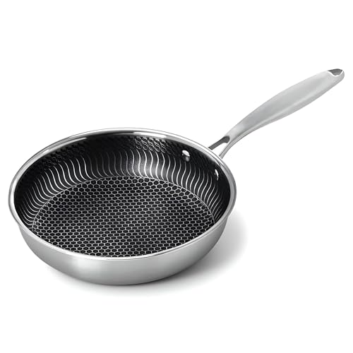 - هذه المقلاة غير اللاصقة مصنوعة من الستانلس ستيل 18/8 عالي الجودة مع تصميم على شكل قرص العسل بتغطية كاملة، مما يضمن أداءً فائقًا غير لاصق. تم ترقيته بأسطح منقوشة بالليزر تحسن بشكل كبير من إطلاق الطعام وسهولة التنظيف.