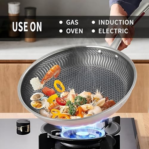 Generic - مقلاة متوافقة مع الحث - تصميم خلية النحل 30 سم، طلاء مقاوم للخدش، سطح غير لاصق، هيكل ستيل مع غطاء للطهي الفعال