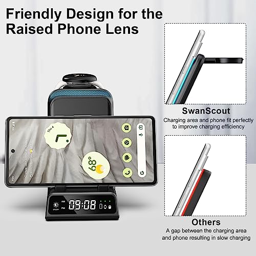 SwanScout - قاعدة شحن حثي لساعة جوجل بيكسل من سوان سكاوت، شاحن لاسلكي 4 في 1 لأجهزة جوجل بيكسل 7A/7/7 برو/6/6 برو/5/4/3/XL، بكسل بادز برو