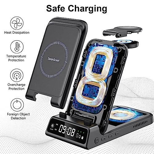 - 【تصميم قابل للطي والحمل】تم تصميم شاحن سوان سكاوت اللاسلكي 4 في 1 مع وضع نمط حياتك في الاعتبار، مما يجعل من السهل جدًا حمله وتخزينه. إنه ليس فقط شاحن لاسلكي قابل للطي، ولكنه أيضًا حامل هاتف. اضغط على زر مفتاح شحن الهاتف في أي وقت لبدء شحن الهاتف أو إيقافه.