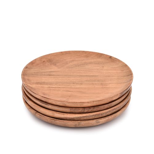 Indus Lifespace - طقم أطباق عشاء من خشب الأكاسيا اندوس لايف سبيس مكون 4 قطع لتقديم الوجبات الخفيفة والحلويات الخشب الطبيعي الطعام ووجبات العشاء 20.32 سم × 20.32 1.27 بني