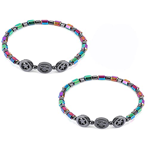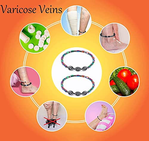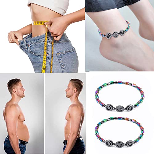 INENIMARTJ - INENIMARTJ 2Pcs Anti Swelling Black Obsidian Anklet Magnetic Slim Hematite Anklet for Women Men Circle Star Magnetic Colorful Anti-Anxiety Yoga Lady Anklet Bracelet