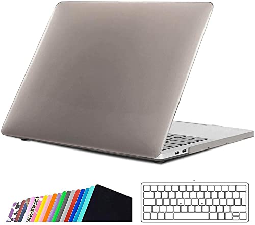 INESEON - حافظة ماك بوك برو 13 انش من ايه دبليو اتش 2019-2018-2017-2016 حماية صلبة رفيعة وغطاء كيبورد لماك مع-بدون شريط لمس موديل A2159 A1989 A1706 A1708 رمادي كريستالي مواد مختلطة