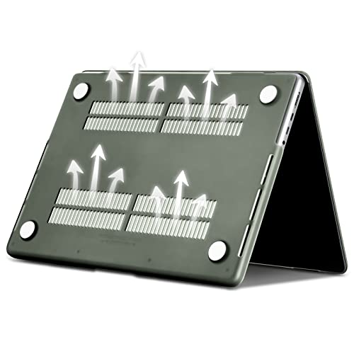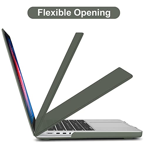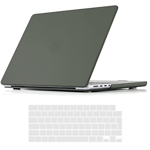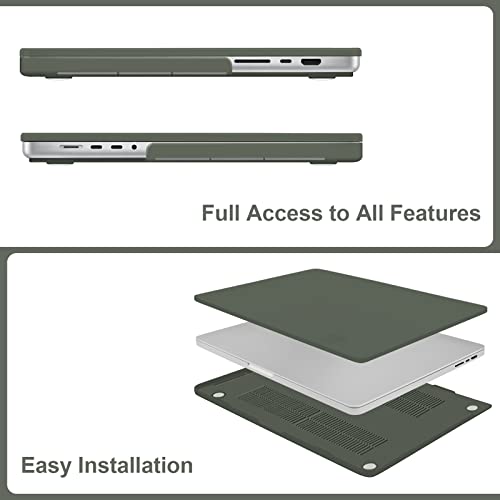 INESEON - حافظة اي نيسون متوافقة مع ماك بوك برو 2021 2023 14 انش A2442/A2779 M1/M2 برو ماكس مع تاتش اي دي، غطاء حماية بلاستيكي صلب وغطاء كيبورد لجهاز ماك بوك برو 14.2 انش، اخضر داكن