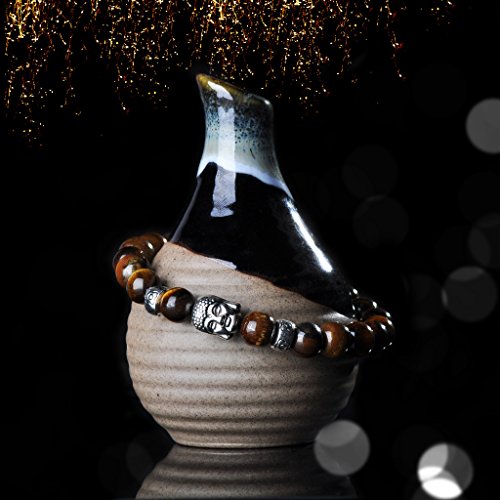 generic - سوار شاكرا جذر بوذا من انفينيت يو - 9 ملم للجنسين مطلي بالذهب من اللافا البركاني/اللازورد/الفيروز، سوار طاقة علاجي للرجال والنساء واليوغي، 9 ملم