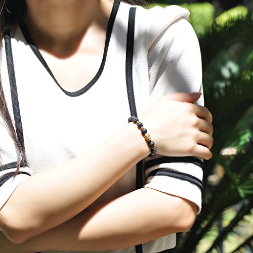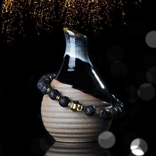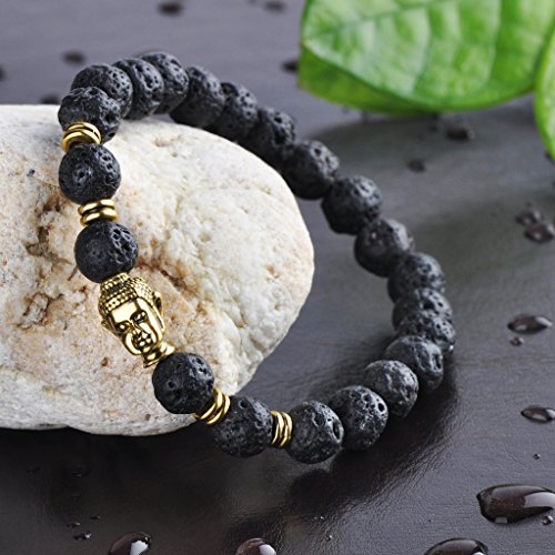 Infinite U - سوار شاكرا الجذور من احجار لافا بركانية ولازورد وفيروز مطلي بالذهب مع رأس بوذا للطاقة والشفاء واليوجا للرجال والنساء مقاس 9 ملم انفنيتي يو حجر