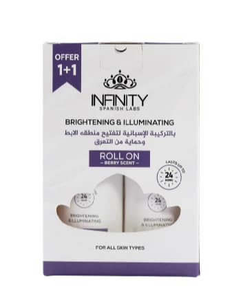 Infinity Spanish labs - مزيل عرق رول اون لتفتيح وتفتيح البشرة، برائحة التوت، مع ديرماوايت دبليو اف وحمض الكوجيك، حماية لمدة 24 ساعة، تركيبة مبيضة من انفينيتي، عبوتان 80 مل لكل واحد