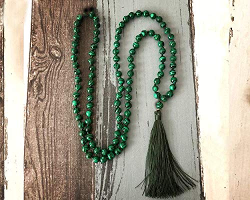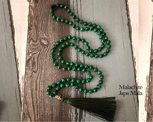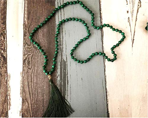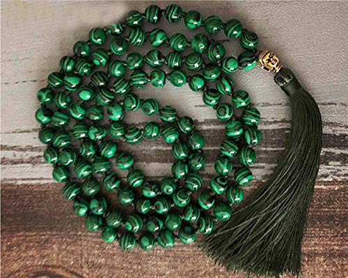 Infinity Healing stones - مسبحة من حجر المالاشيت الاخضر الطبيعي بخرز مالا عدد 108 بمقاس 8 ملم لليوغا وهدايا اشبينة العروس من انفينيتي هيلينج ستونز