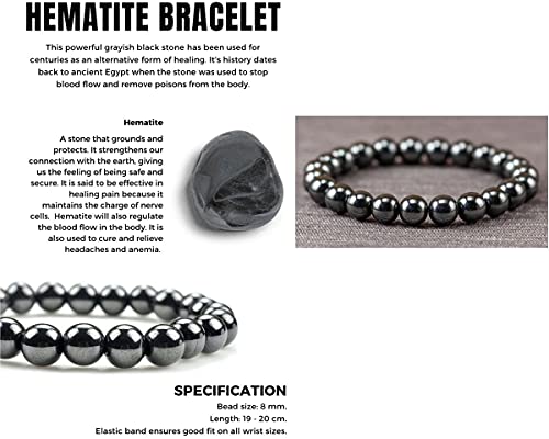 generic - احجار علاجية انفينيتي - مجموعة من 4 اساور هيماتايت، سوار صحي من الهيماتايت، اساور خرز للرجال والنساء (الهيماتيت) والهيماتايت