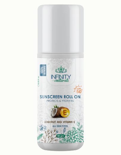 Infinity Naturals - واقيات من الشمس رول حماية واسعة الطيف من الأشعة فوق البنفسجية الطويلة والمتوسطة بدون عطور ومرطب معامل حماية من الشمس 50+، للبشرة مع أكسيد الزنك وثاني أكسيد التيتانيوم من انفينيتي ناتشورالز 80 جم