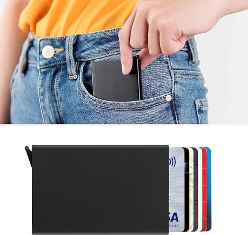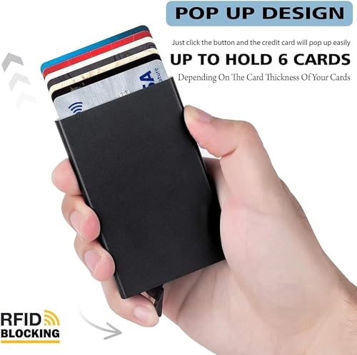 Generic - محفظة بطاقات ذكية من الألومنيوم بسعة 6 بطاقات للرجال والنساء من انفينيتي بلس - حجب تقنية تحديد الهوية بموجات الراديو (أسود)