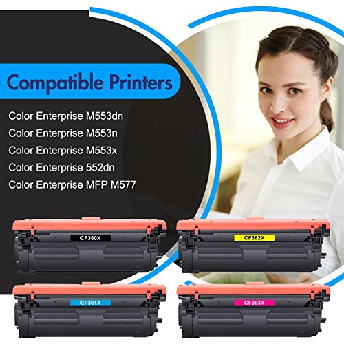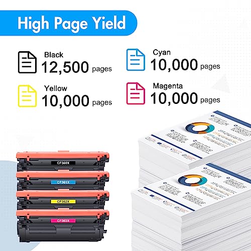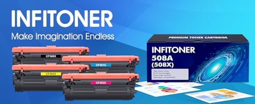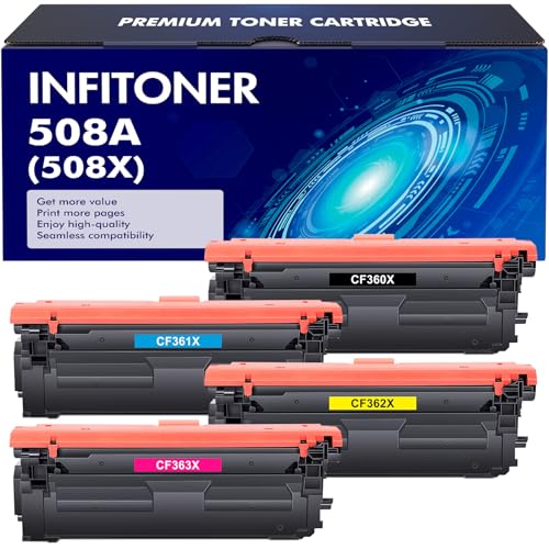INFITONER - خرطوشة حبر بديلة 508A متوافقة مع طابعة اتش بي 508A و508X وCF360X وCF361X وCF362X وCF363X لطابعة سلسلة كولور انتبرايز M553 وM552 و553 وMFP وM577 من انفيتونر، لون أسود وسيان وماجنتا وأصفر، عبوة 4 قطع