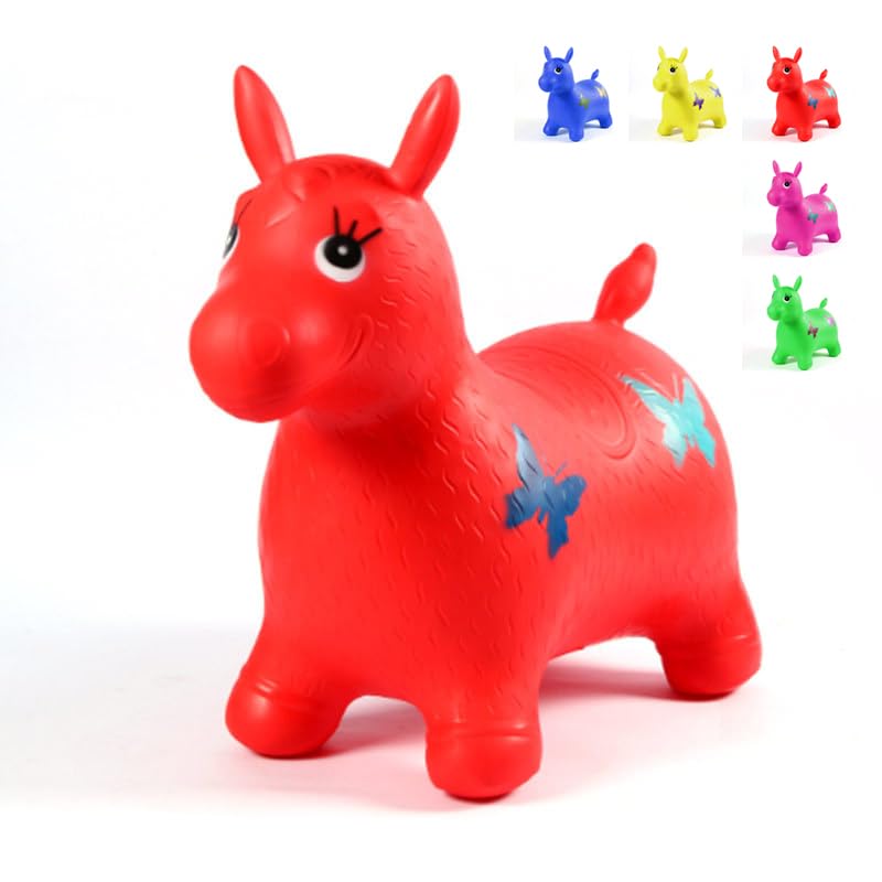 Generic - لعبة حيوان نطاط قابلة للنفخ للأطفال – بشكل حصان نطاط للركوب – للعب داخل المنزل وخارجه – مناسبة للأطفال من عمر سنتين فما فوق (لون أحمر).