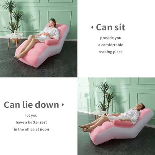 Generic - كرسي استرخاء قابل للنفخ بتصميم سميك ومريح على شكل حرف S، سرير كنبة محمول ومريح للبلكونة وغرفة النوم وغرفة المعيشة والتخييم في الأماكن الخارجية والاسترخاء، لون وردي أو بني (وردي)