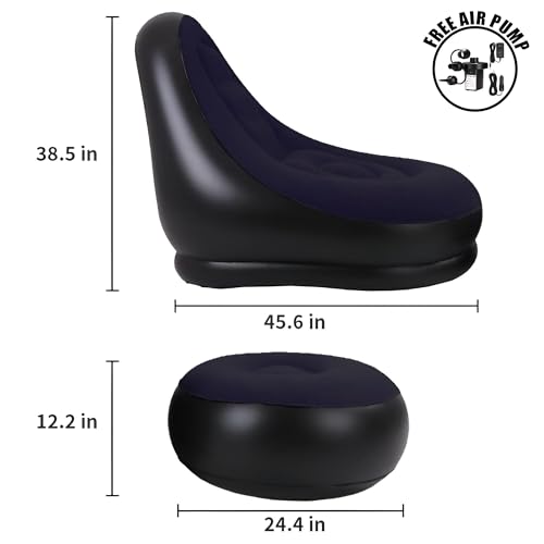 - كبير بما يكفي لاستيعاب معظم البالغين والأطفال، يبلغ مقاس الكرسي القابل للنفخ حوالي 40.9 × 36 × 38.3 انش، مع مقاس مسند يبلغ حوالي 24.2 × 12.1 انش، مما يجعله مثاليًا للاسترخاء في لحظات العائلة ووقت الفراغ المشترك.